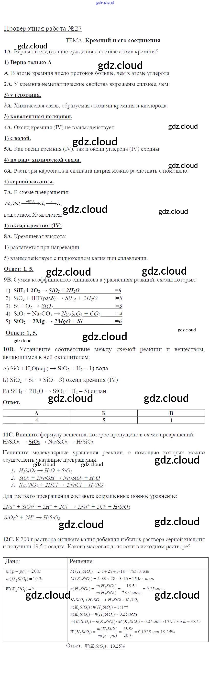 проверочная работа / пр-27. Кремний и его соединения