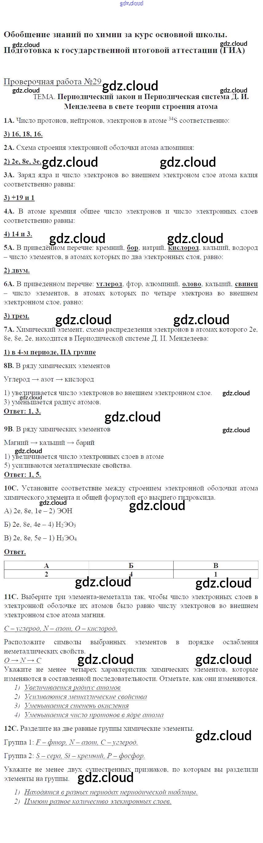 Ответ на задание ПР-29. Периодический закон и система Менделеева в свете теории строения атома Тетрадь для оценки качества знаний Химия за 9 (девятый) класс Габриелян, Крупцова Вертикаль 2017