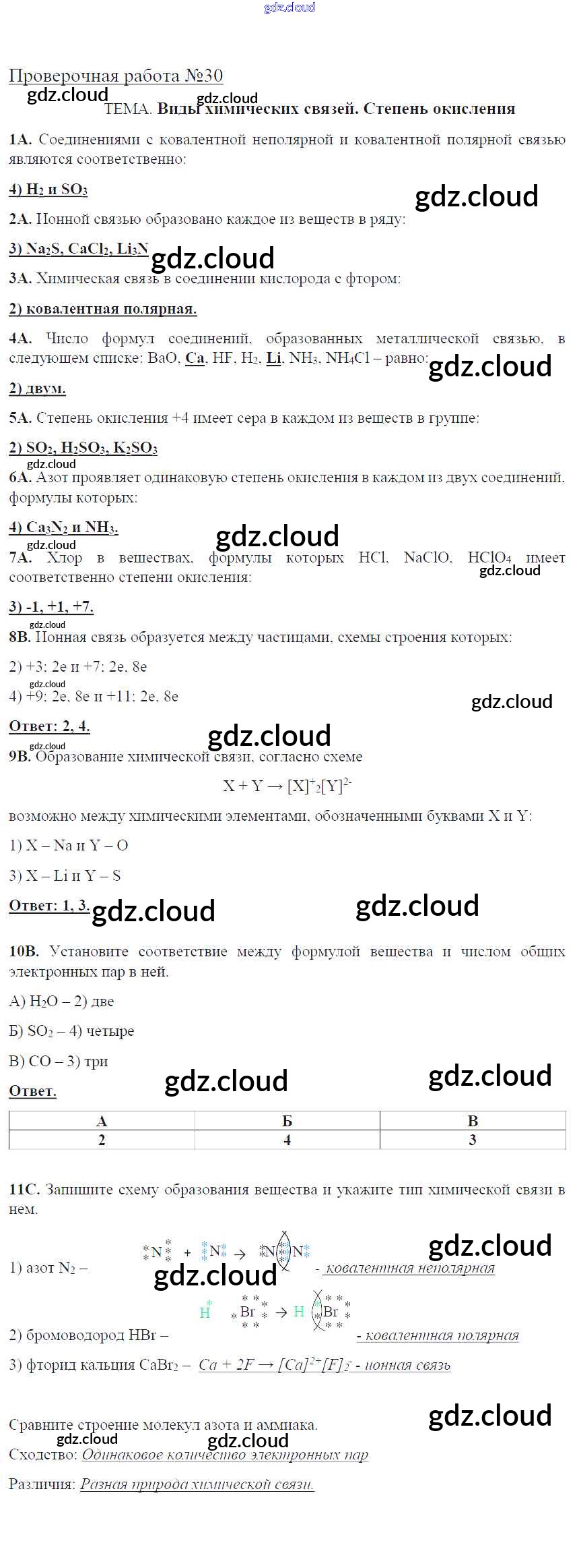Ответ на задание ПР-30. Виды химических связей. Степень окисления Тетрадь для оценки качества знаний Химия за 9 (девятый) класс Габриелян, Крупцова Вертикаль 2017