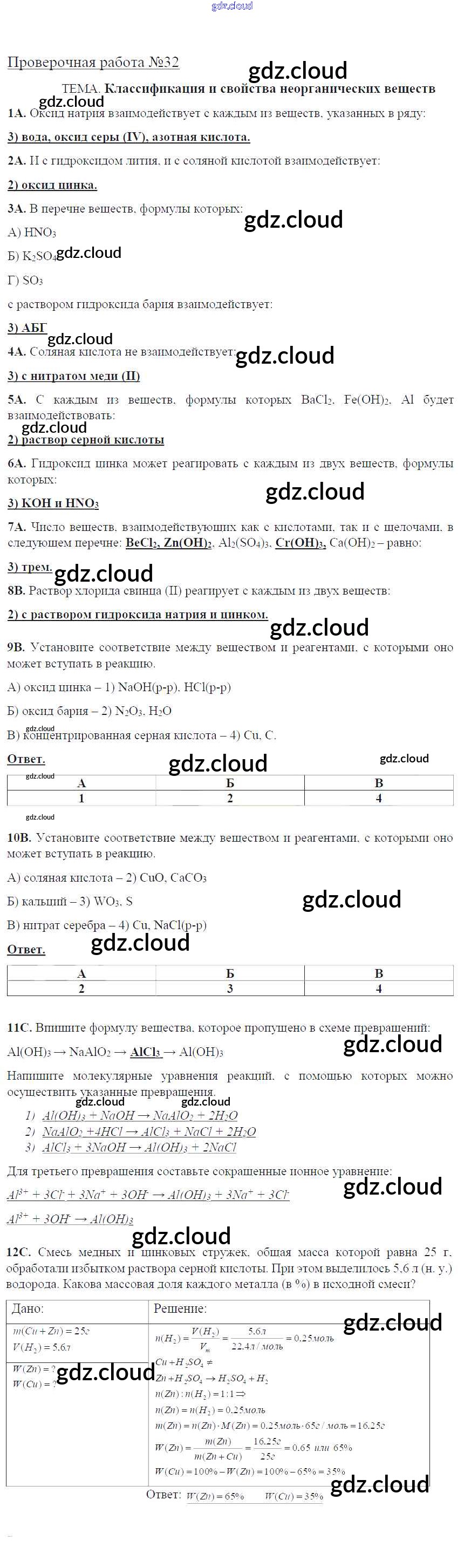 проверочная работа / пр-32. Классификация и свойства неорганических веществ