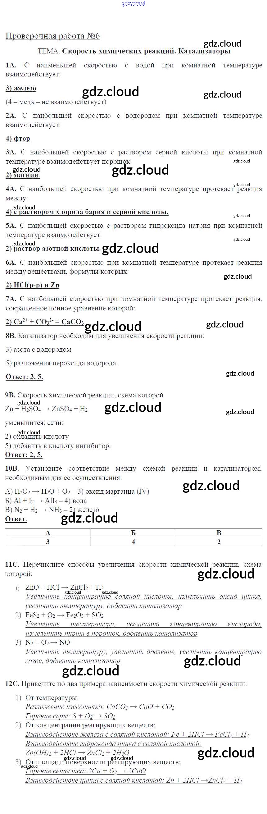 Ответы к проверочным работам по Химии 9 класс Тетрадь для оценки качества знаний Габриелян Вертикаль Дрофа