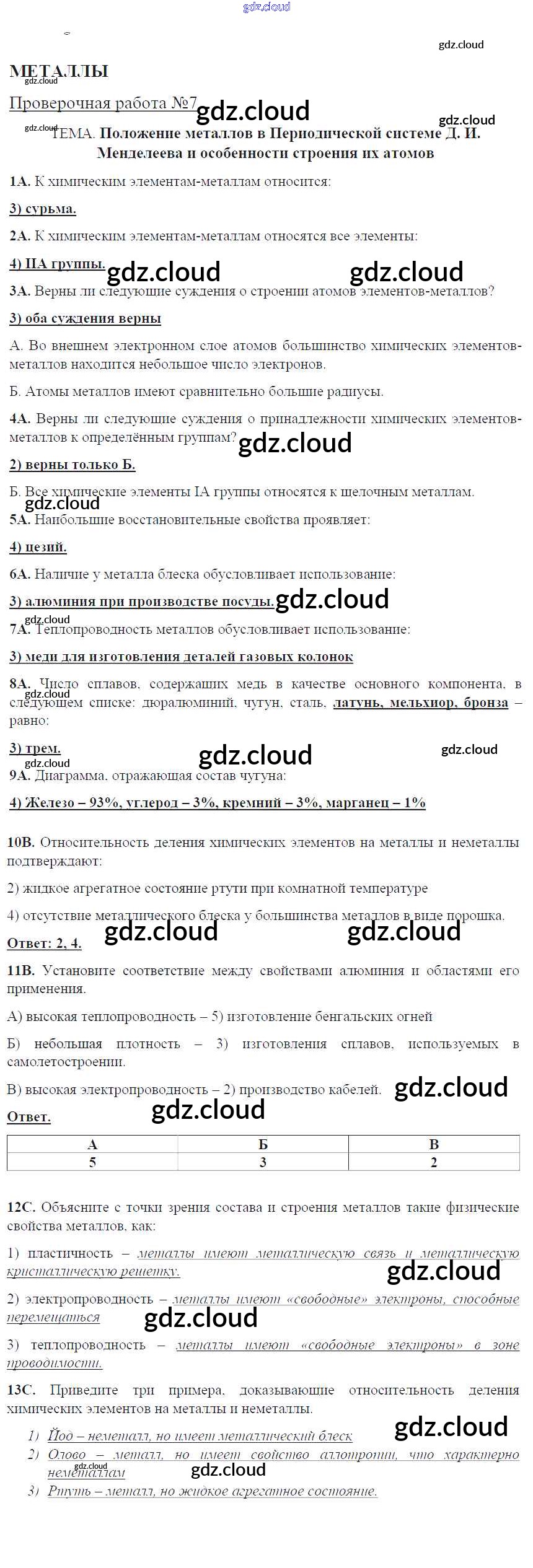 Ответы к проверочным работам по Химии 9 класс Тетрадь для оценки качества знаний Габриелян Вертикаль Дрофа