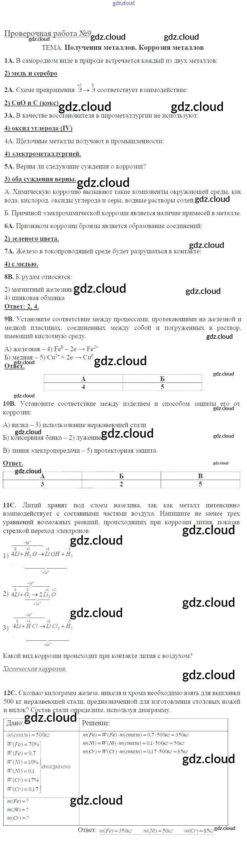 проверочная работа / пр-9. Получение металлов. Коррозия металлов