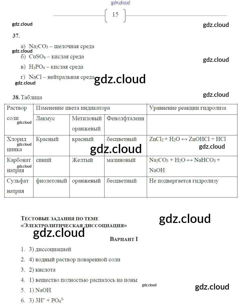Ответ на задание 15 Рабочая тетрадь Химия за 9 (девятый) класс Габрусева 2012 ФГОС онлайн и без номера телефона.