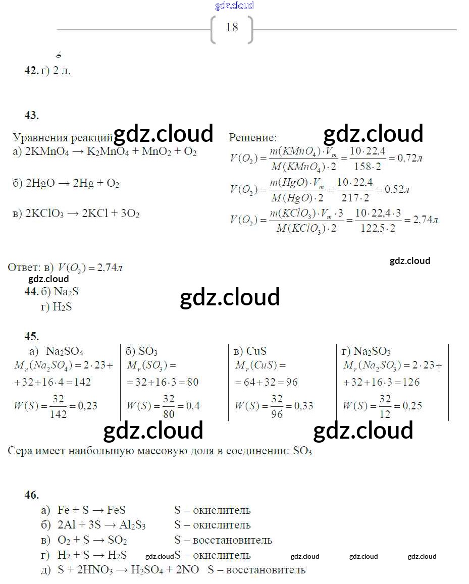 Ответ на задание 18 Рабочая тетрадь Химия за 9 (девятый) класс Габрусева 2012 ФГОС онлайн и без номера телефона.