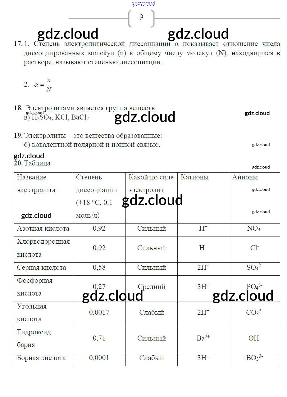 Ответ на задание 9 Рабочая тетрадь Химия за 9 (девятый) класс Габрусева 2012 ФГОС онлайн и без номера телефона.