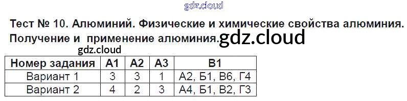 Ответ на задание Тест №10. Алюминий. Физические и химические свойства алюминия Контрольно-измерительные материалы (КИМ) Химия за 9 (девятый) класс Стрельникова 2017