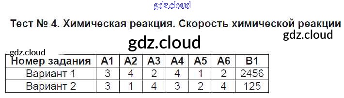 Ответ на задание Тест №4. Химическая реакция. Скорость химической реакции Контрольно-измерительные материалы (КИМ) Химия за 9 (девятый) класс Стрельникова 2017