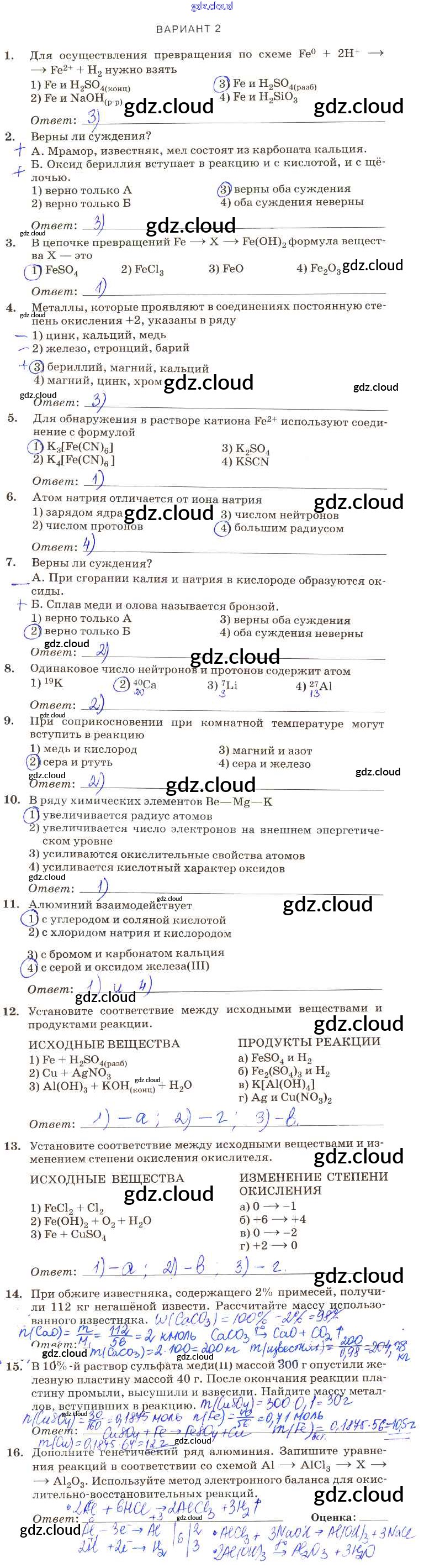 Ответ на задание вариант-2 Контрольные работы Химия за 9 (девятый) класс Габриелян, Березкин, Ушакова, Майорова, Кузьмина, Кириллова Вертикаль 2013