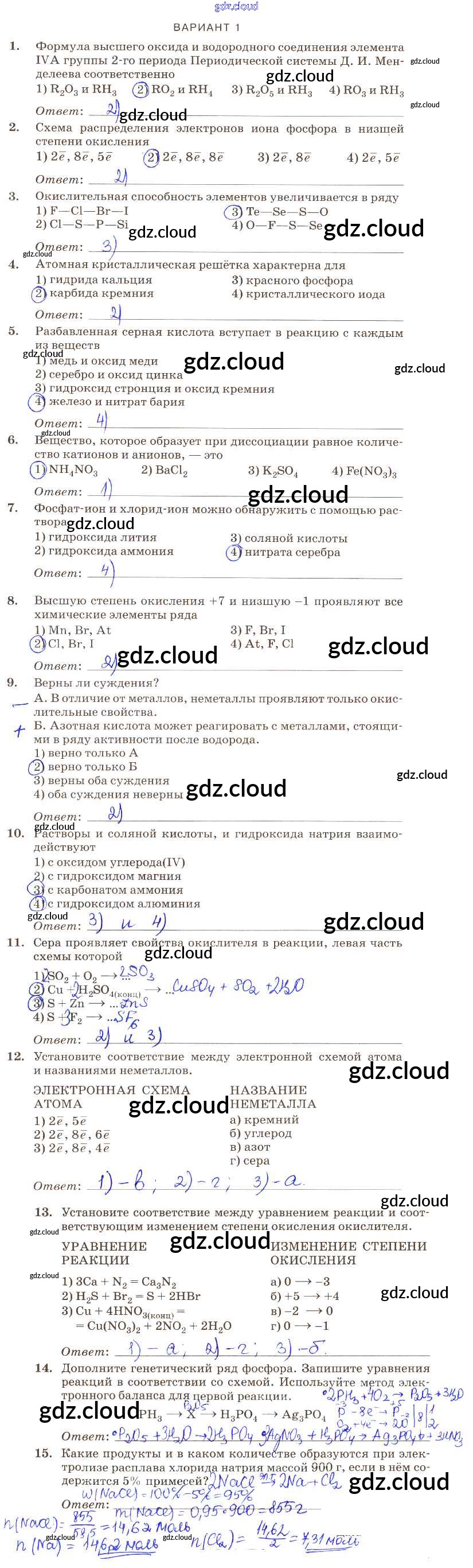 Ответ на задание вариант-1 Контрольные работы Химия за 9 (девятый) класс Габриелян, Березкин, Ушакова, Майорова, Кузьмина, Кириллова Вертикаль 2013