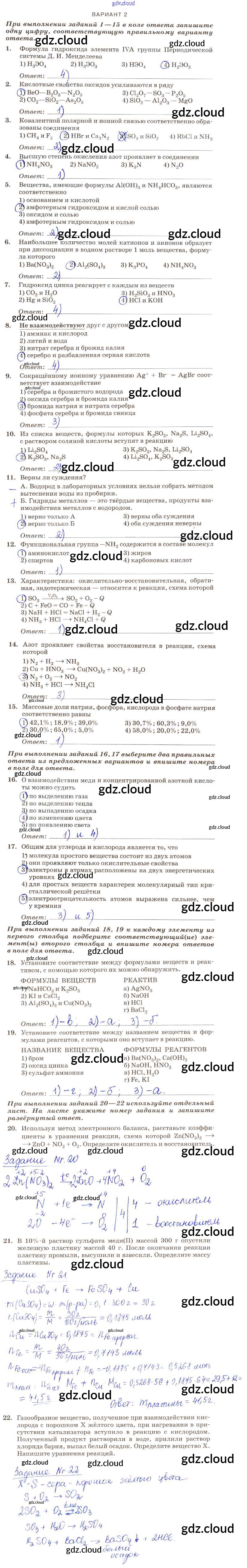 Ответ на задание вариант-2 Контрольные работы Химия за 9 (девятый) класс Габриелян, Березкин, Ушакова, Майорова, Кузьмина, Кириллова Вертикаль 2013