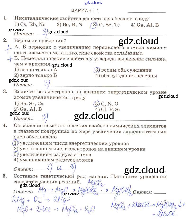 ПР-1 Ответы к проверочным работам по Химии 9 класс Контрольные работы Габриелян Вертикаль Дрофа