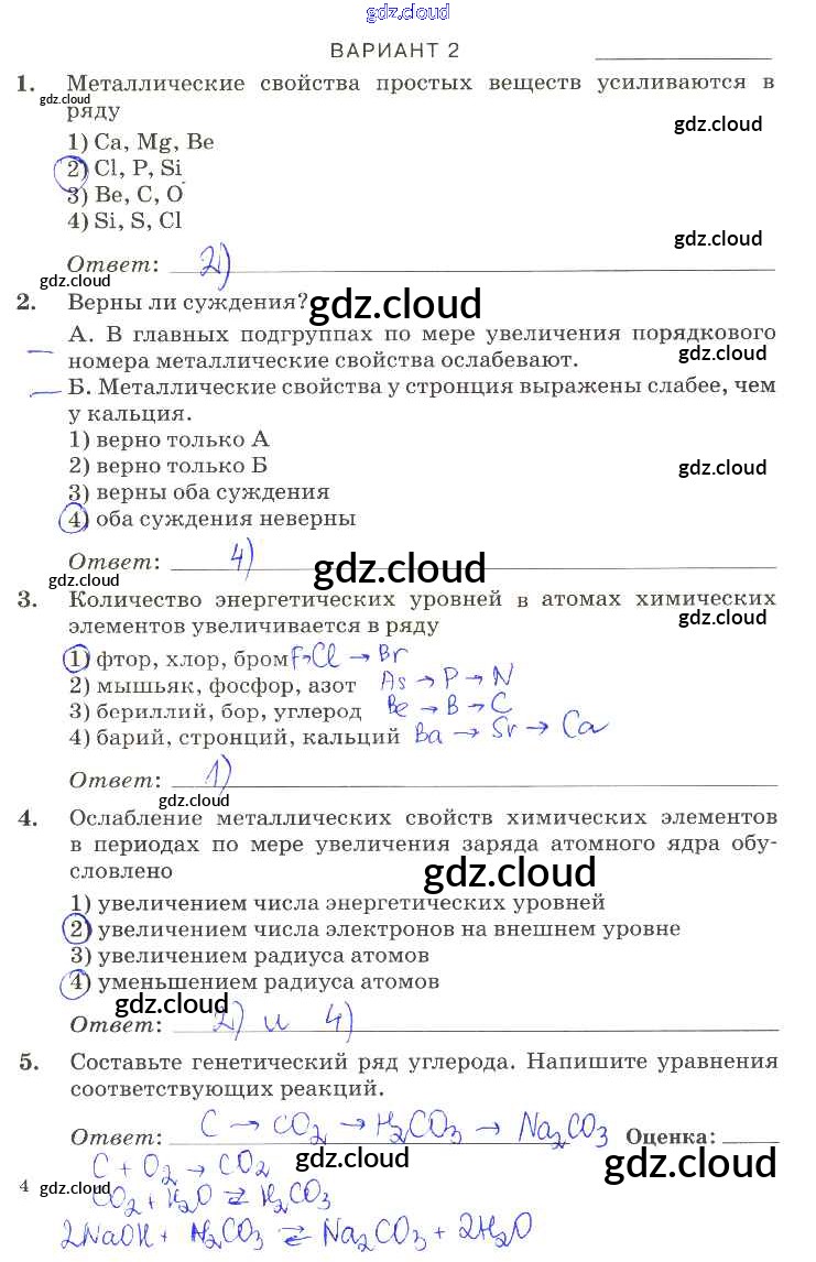 Ответ на задание вариант-2 Контрольные работы Химия за 9 (девятый) класс Габриелян, Березкин, Ушакова, Майорова, Кузьмина, Кириллова Вертикаль 2013