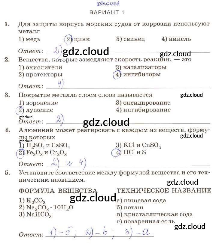 Ответ на задание вариант-1 Контрольные работы Химия за 9 (девятый) класс Габриелян, Березкин, Ушакова, Майорова, Кузьмина, Кириллова Вертикаль 2013