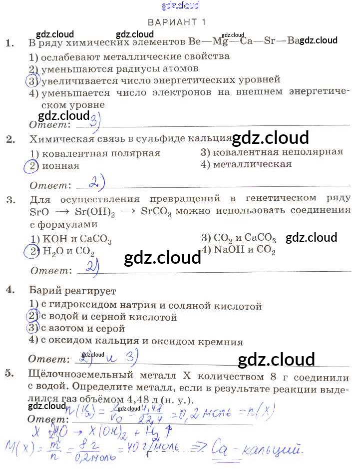 Ответ на задание вариант-1 Контрольные работы Химия за 9 (девятый) класс Габриелян, Березкин, Ушакова, Майорова, Кузьмина, Кириллова Вертикаль 2013
