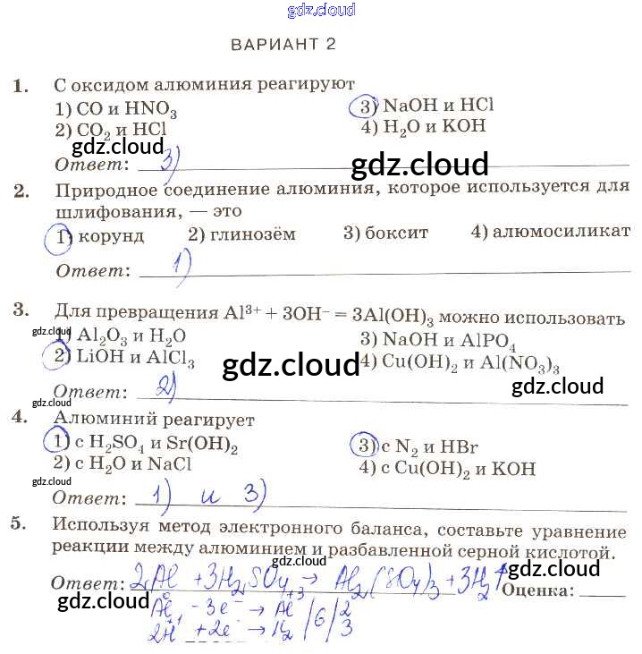 Ответ на задание вариант-2 Контрольные работы Химия за 9 (девятый) класс Габриелян, Березкин, Ушакова, Майорова, Кузьмина, Кириллова Вертикаль 2013