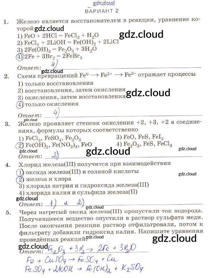 Ответ на задание вариант-2 Контрольные работы Химия за 9 (девятый) класс Габриелян, Березкин, Ушакова, Майорова, Кузьмина, Кириллова Вертикаль 2013