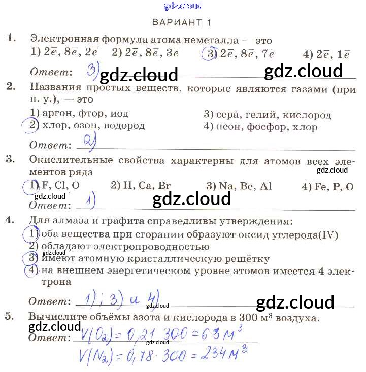 Ответ на задание вариант-1 Контрольные работы Химия за 9 (девятый) класс Габриелян, Березкин, Ушакова, Майорова, Кузьмина, Кириллова Вертикаль 2013