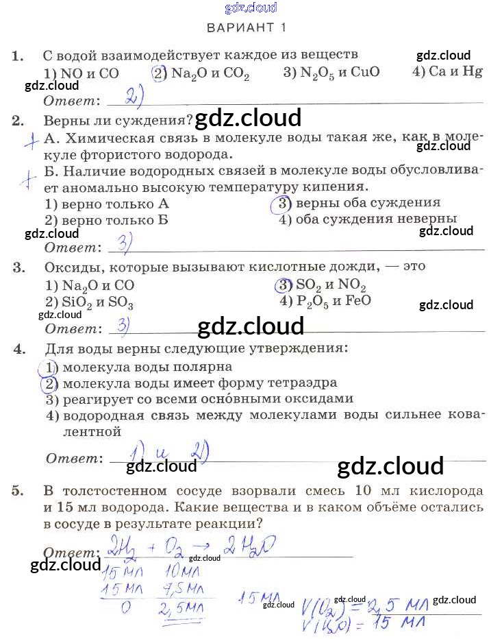 Ответ на задание вариант-1 Контрольные работы Химия за 9 (девятый) класс Габриелян, Березкин, Ушакова, Майорова, Кузьмина, Кириллова Вертикаль 2013