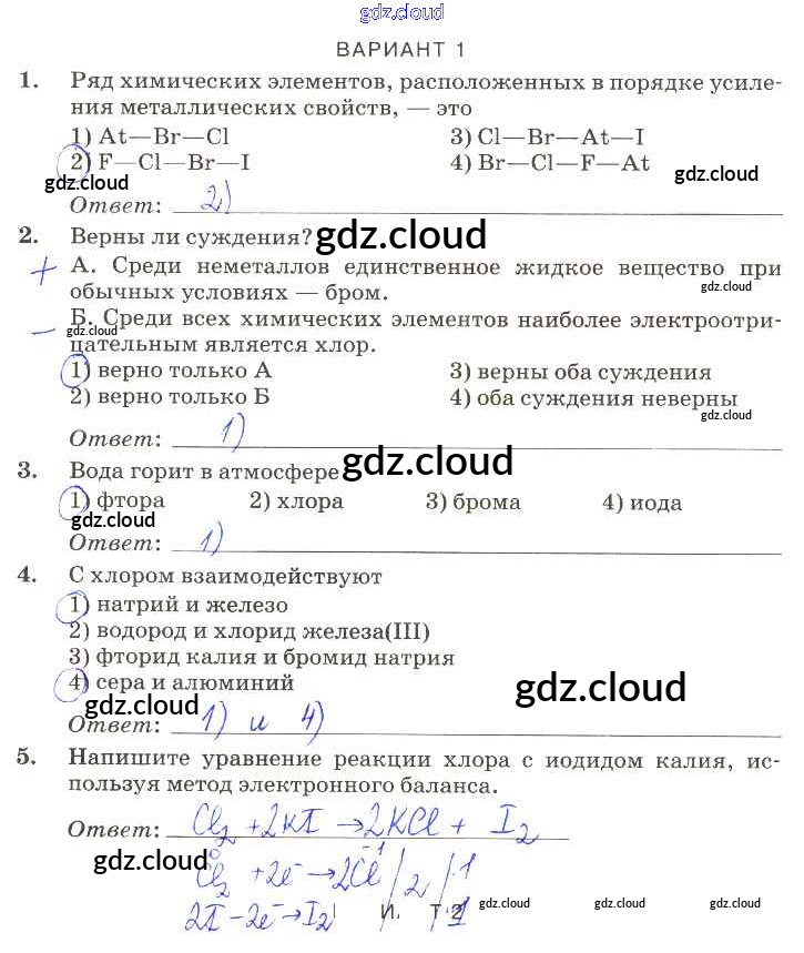 Ответ на задание вариант-1 Контрольные работы Химия за 9 (девятый) класс Габриелян, Березкин, Ушакова, Майорова, Кузьмина, Кириллова Вертикаль 2013