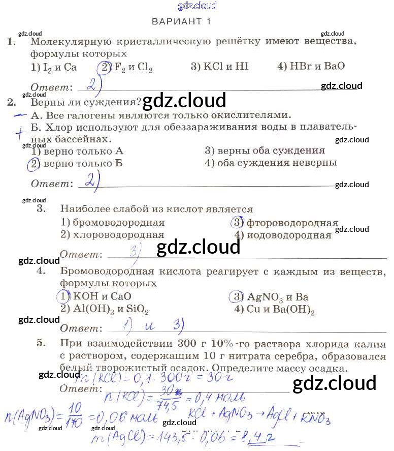 Ответ на задание вариант-1 Контрольные работы Химия за 9 (девятый) класс Габриелян, Березкин, Ушакова, Майорова, Кузьмина, Кириллова Вертикаль 2013