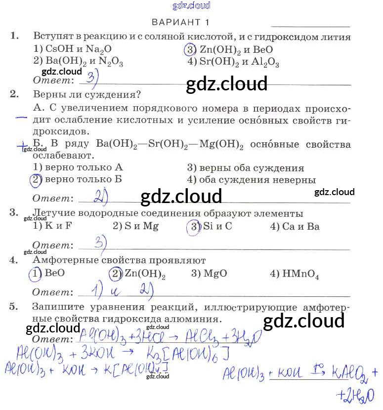 ПР-2 Ответы к проверочным работам по Химии 9 класс Контрольные работы Габриелян Вертикаль Дрофа