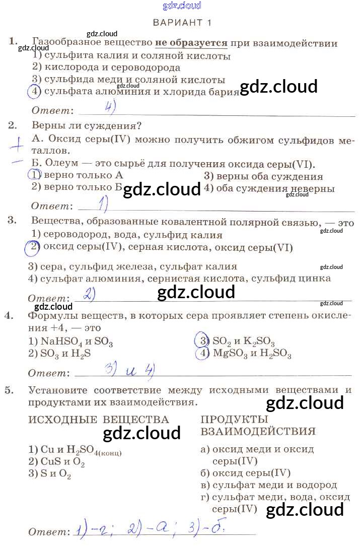 Ответ на задание вариант-1 Контрольные работы Химия за 9 (девятый) класс Габриелян, Березкин, Ушакова, Майорова, Кузьмина, Кириллова Вертикаль 2013