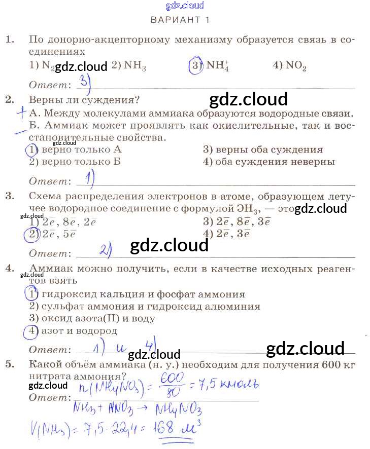 Ответ на задание вариант-1 Контрольные работы Химия за 9 (девятый) класс Габриелян, Березкин, Ушакова, Майорова, Кузьмина, Кириллова Вертикаль 2013