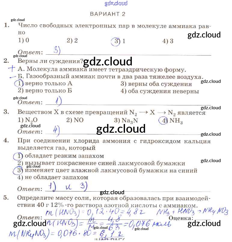 Ответ на задание вариант-2 Контрольные работы Химия за 9 (девятый) класс Габриелян, Березкин, Ушакова, Майорова, Кузьмина, Кириллова Вертикаль 2013