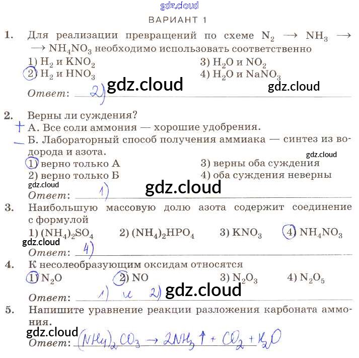 Ответ на задание вариант-1 Контрольные работы Химия за 9 (девятый) класс Габриелян, Березкин, Ушакова, Майорова, Кузьмина, Кириллова Вертикаль 2013