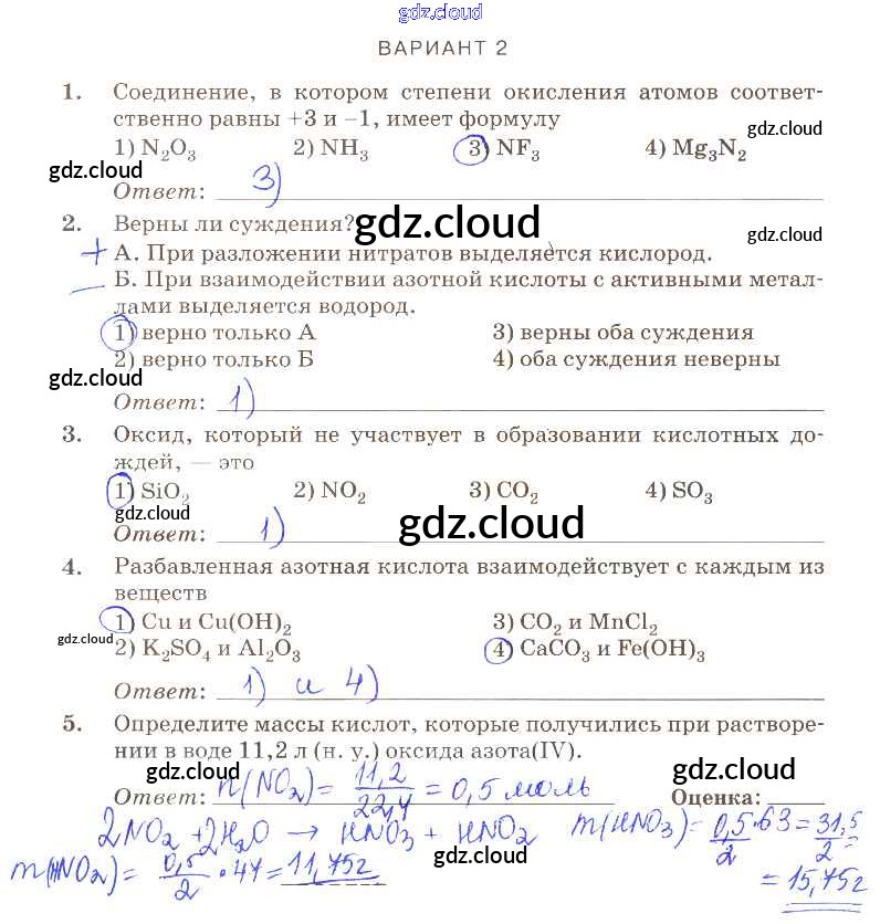 Ответ на задание вариант-2 Контрольные работы Химия за 9 (девятый) класс Габриелян, Березкин, Ушакова, Майорова, Кузьмина, Кириллова Вертикаль 2013