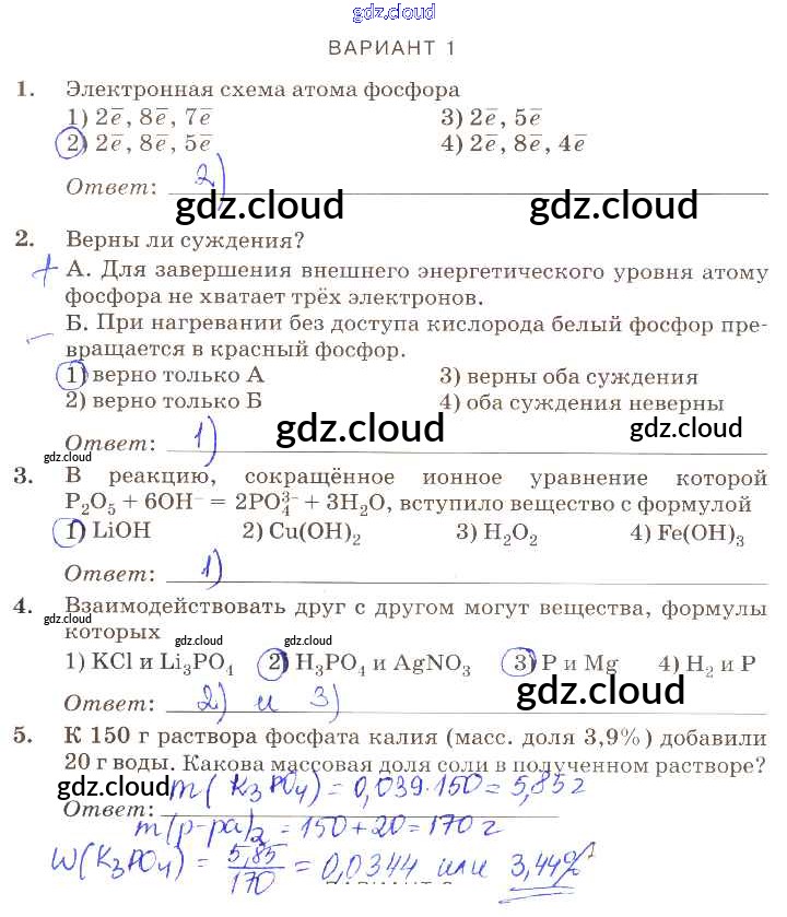 Ответ на задание вариант-1 Контрольные работы Химия за 9 (девятый) класс Габриелян, Березкин, Ушакова, Майорова, Кузьмина, Кириллова Вертикаль 2013