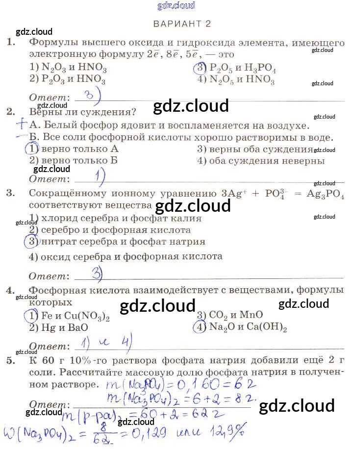 Ответ на задание вариант-2 Контрольные работы Химия за 9 (девятый) класс Габриелян, Березкин, Ушакова, Майорова, Кузьмина, Кириллова Вертикаль 2013