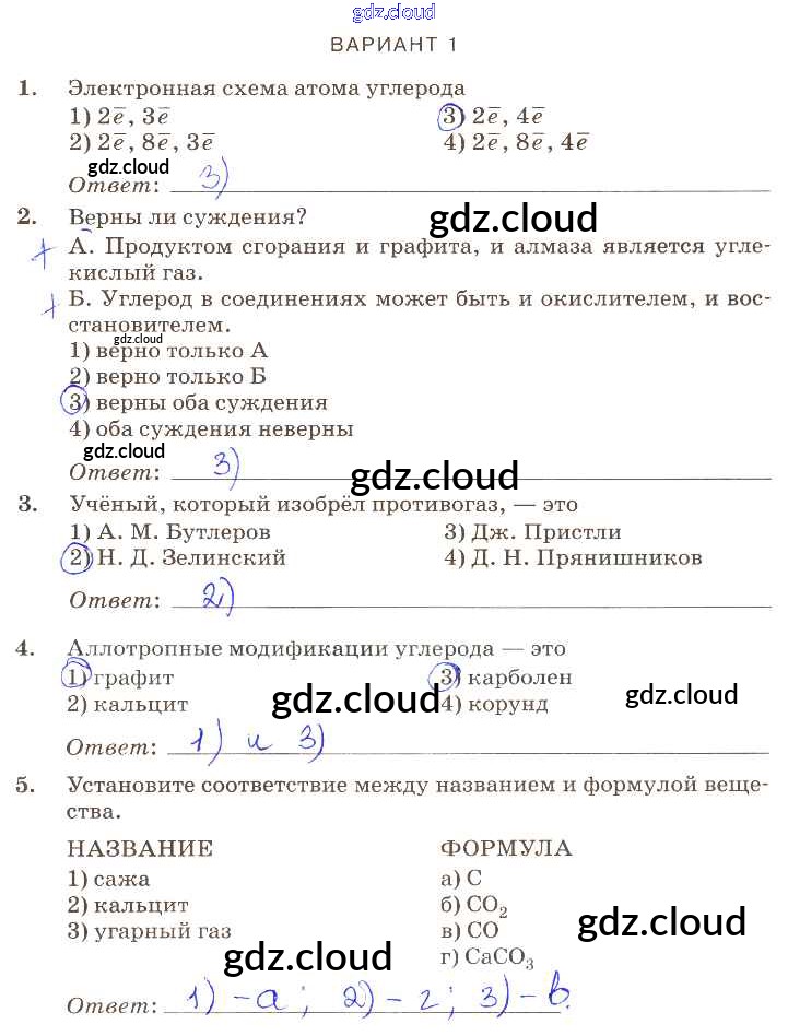 Ответ на задание вариант-1 Контрольные работы Химия за 9 (девятый) класс Габриелян, Березкин, Ушакова, Майорова, Кузьмина, Кириллова Вертикаль 2013