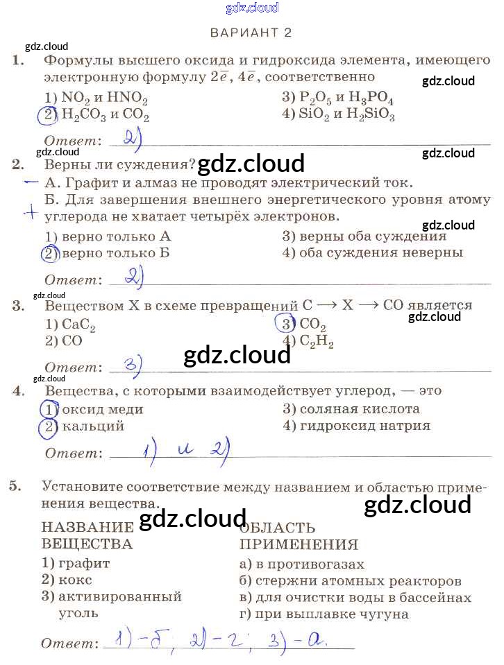 Ответ на задание вариант-2 Контрольные работы Химия за 9 (девятый) класс Габриелян, Березкин, Ушакова, Майорова, Кузьмина, Кириллова Вертикаль 2013