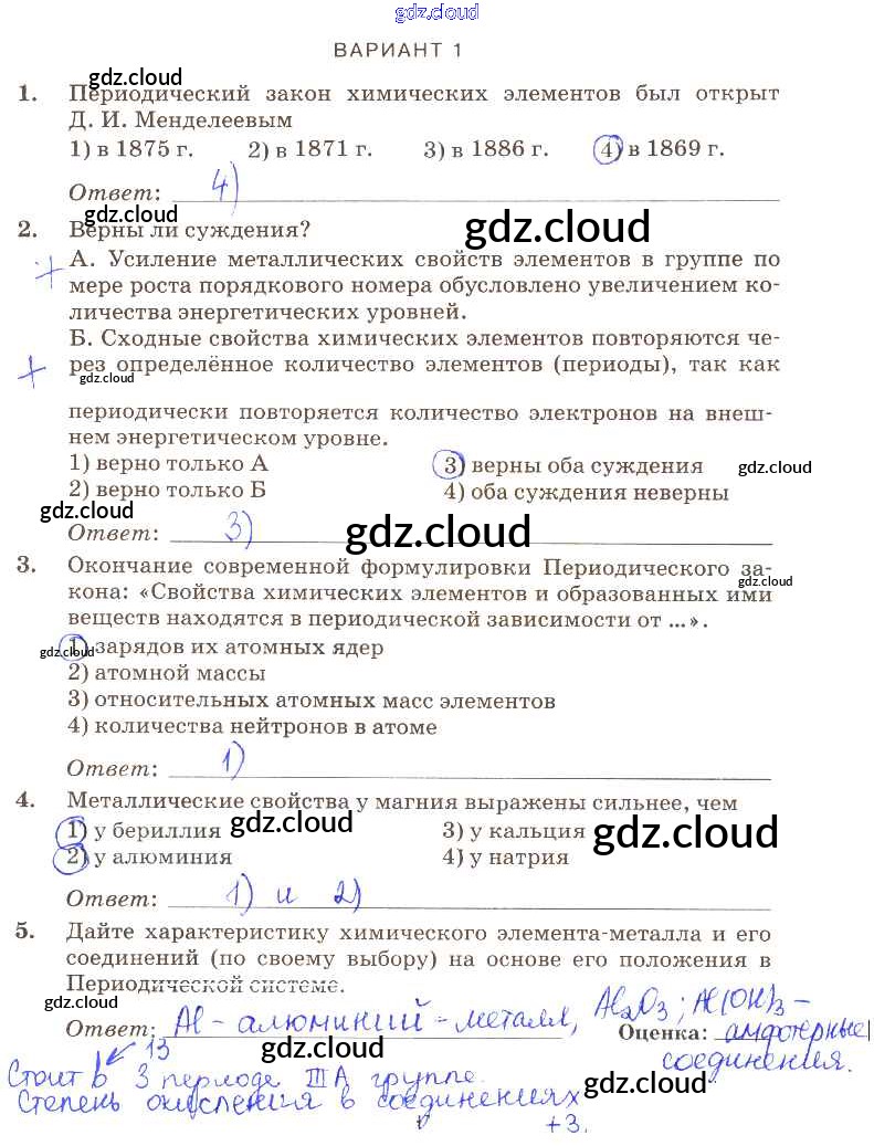 Ответ на задание вариант-1 Контрольные работы Химия за 9 (девятый) класс Габриелян, Березкин, Ушакова, Майорова, Кузьмина, Кириллова Вертикаль 2013
