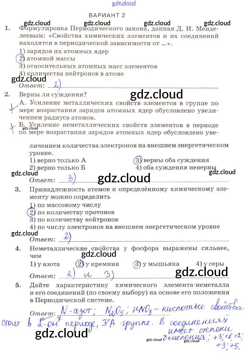 Ответ на задание вариант-2 Контрольные работы Химия за 9 (девятый) класс Габриелян, Березкин, Ушакова, Майорова, Кузьмина, Кириллова Вертикаль 2013