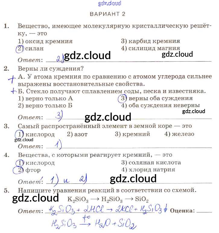 Ответ на задание вариант-2 Контрольные работы Химия за 9 (девятый) класс Габриелян, Березкин, Ушакова, Майорова, Кузьмина, Кириллова Вертикаль 2013