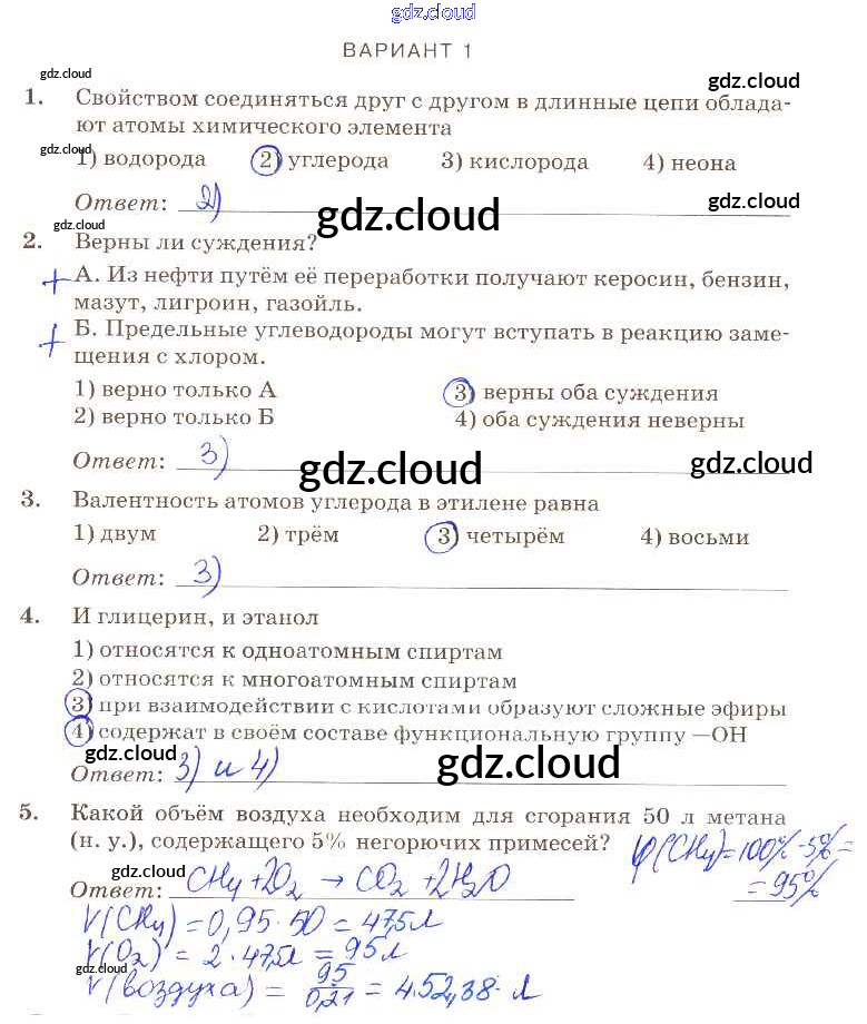 Ответ на задание вариант-1 Контрольные работы Химия за 9 (девятый) класс Габриелян, Березкин, Ушакова, Майорова, Кузьмина, Кириллова Вертикаль 2013