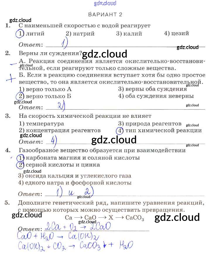 Ответ на задание вариант-2 Контрольные работы Химия за 9 (девятый) класс Габриелян, Березкин, Ушакова, Майорова, Кузьмина, Кириллова Вертикаль 2013