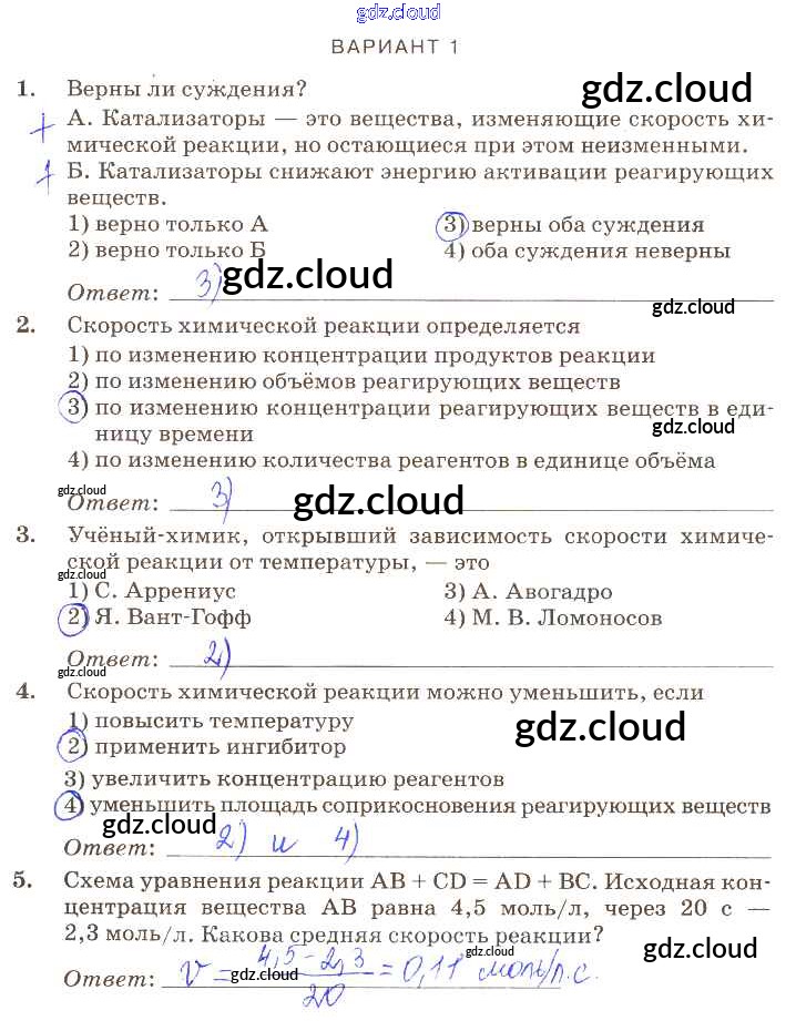 ПР-5 Ответы к проверочным работам по Химии 9 класс Контрольные работы Габриелян Вертикаль Дрофа