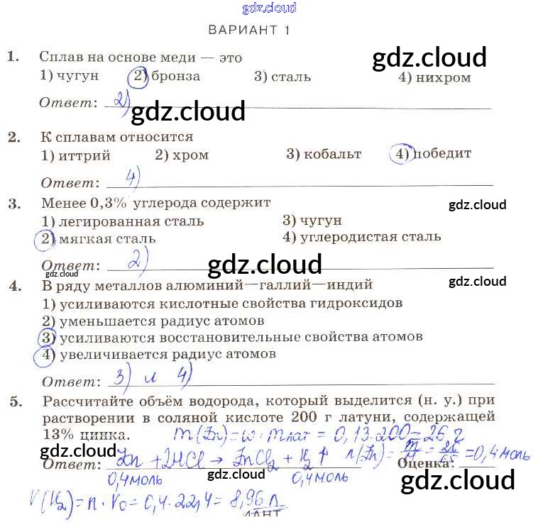 Ответ на задание вариант-1 Контрольные работы Химия за 9 (девятый) класс Габриелян, Березкин, Ушакова, Майорова, Кузьмина, Кириллова Вертикаль 2013