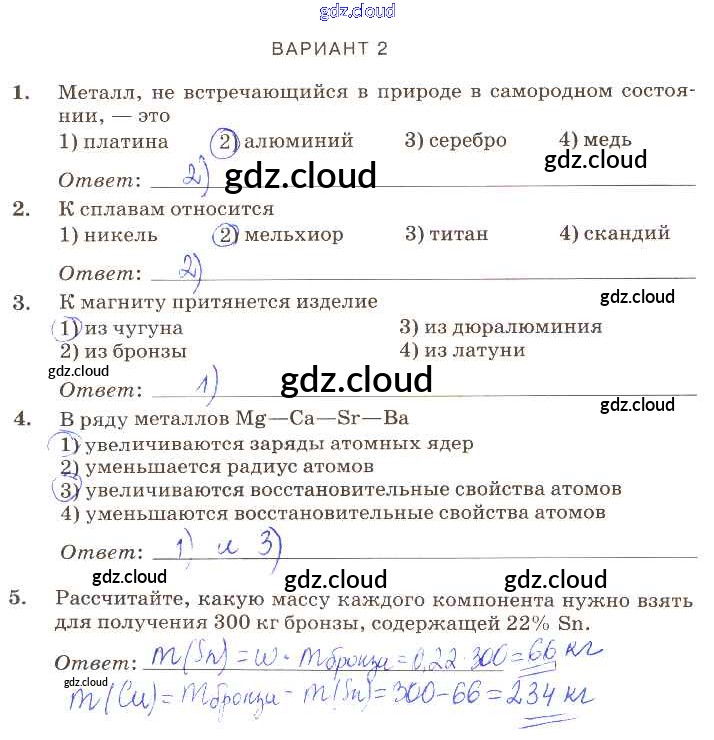 Ответ на задание вариант-2 Контрольные работы Химия за 9 (девятый) класс Габриелян, Березкин, Ушакова, Майорова, Кузьмина, Кириллова Вертикаль 2013