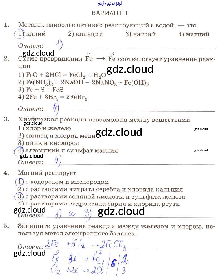 ПР-8 Ответы к проверочным работам по Химии 9 класс Контрольные работы Габриелян Вертикаль Дрофа