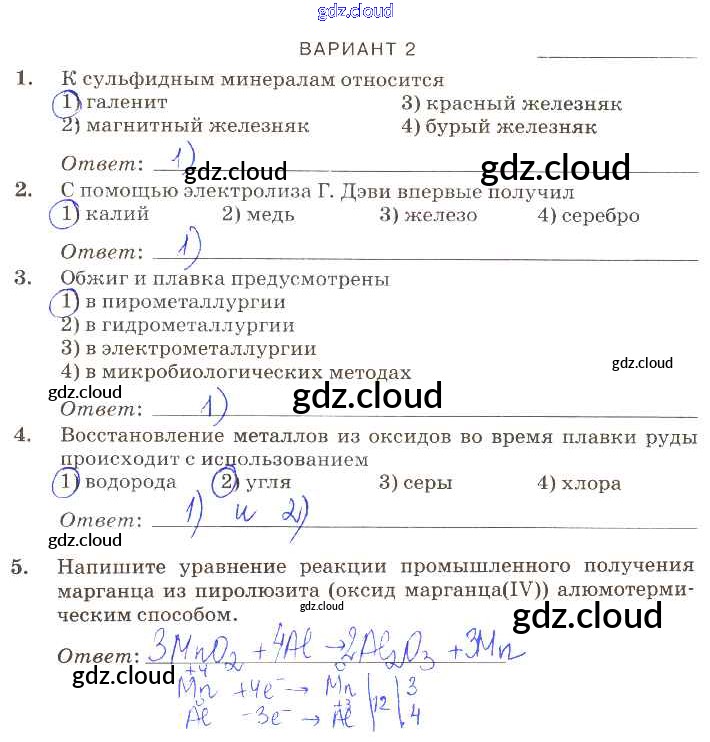 ПР-9 Ответы к проверочным работам по Химии 9 класс Контрольные работы Габриелян Вертикаль Дрофа
