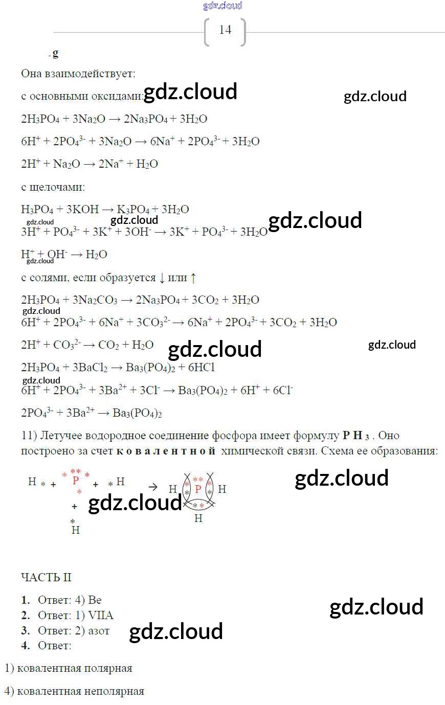 Ответ на задание 14 Рабочая тетрадь Химия за 9 (девятый) класс Габриелян, Сладков Вертикаль 2014 ФГОС онлайн и без номера телефона.