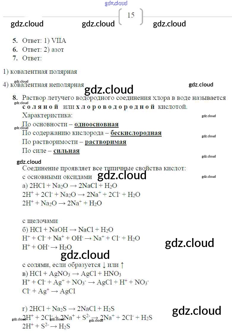 Ответ на задание 15 Рабочая тетрадь Химия за 9 (девятый) класс Габриелян, Сладков Вертикаль 2014 ФГОС онлайн и без номера телефона.