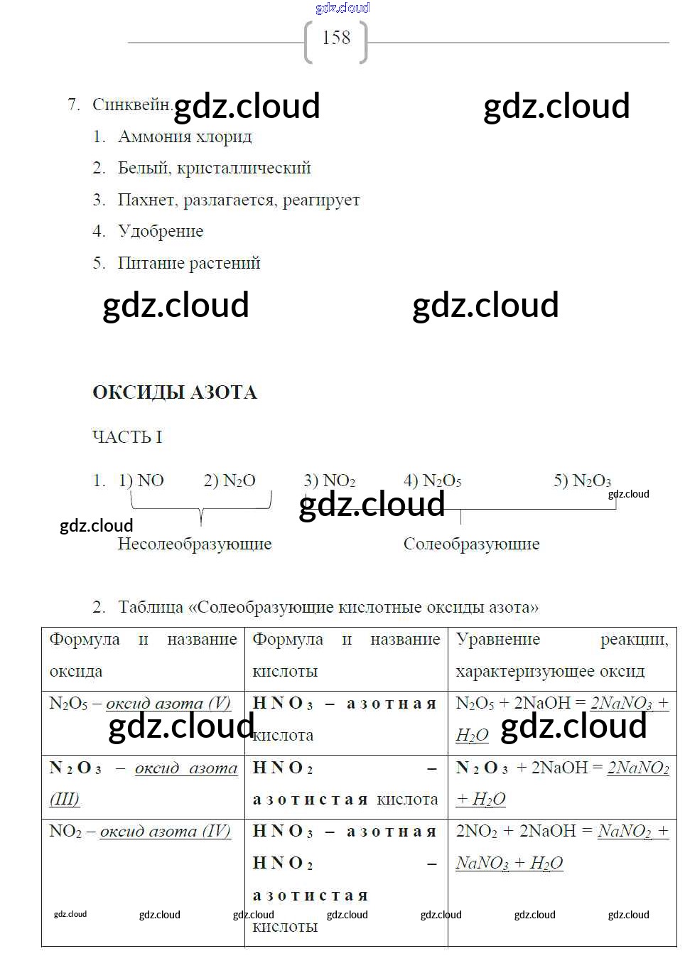 Ответ на задание 158 Рабочая тетрадь Химия за 9 (девятый) класс Габриелян, Сладков Вертикаль 2014 ФГОС онлайн и без номера телефона.