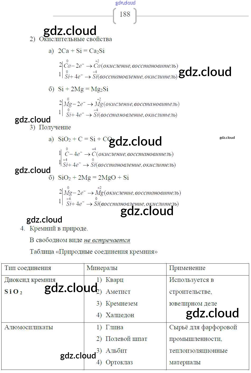 Ответ на задание 188 Рабочая тетрадь Химия за 9 (девятый) класс Габриелян, Сладков Вертикаль 2014 ФГОС онлайн и без номера телефона.