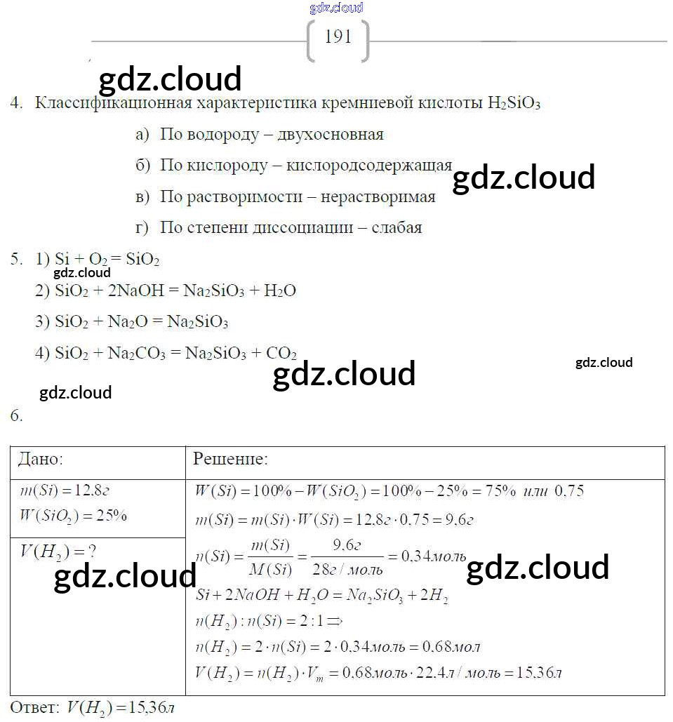 Ответ на задание 191 Рабочая тетрадь Химия за 9 (девятый) класс Габриелян, Сладков Вертикаль 2014 ФГОС онлайн и без номера телефона.